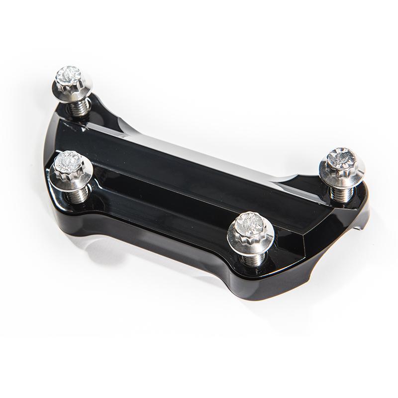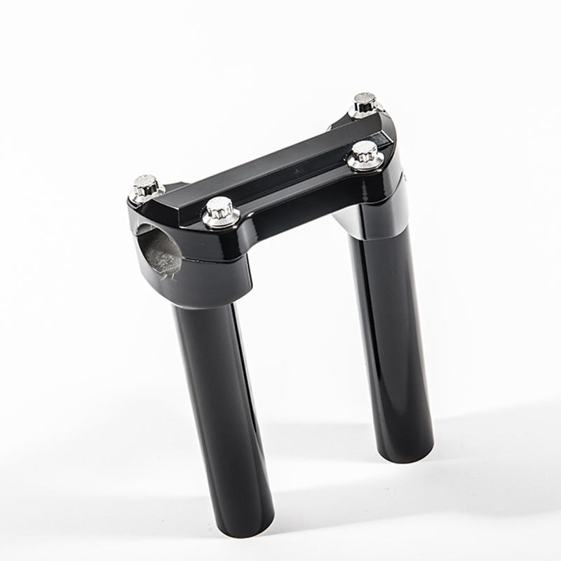 Includes; ARP 12pt top clamp mounting hardware, Big Al's Standard Billet Top Clamp machined from 6061-T6 aircraft aluminum and Riser uprights. Available in Gloss Black or Chrome. Fits all 1" handlebars